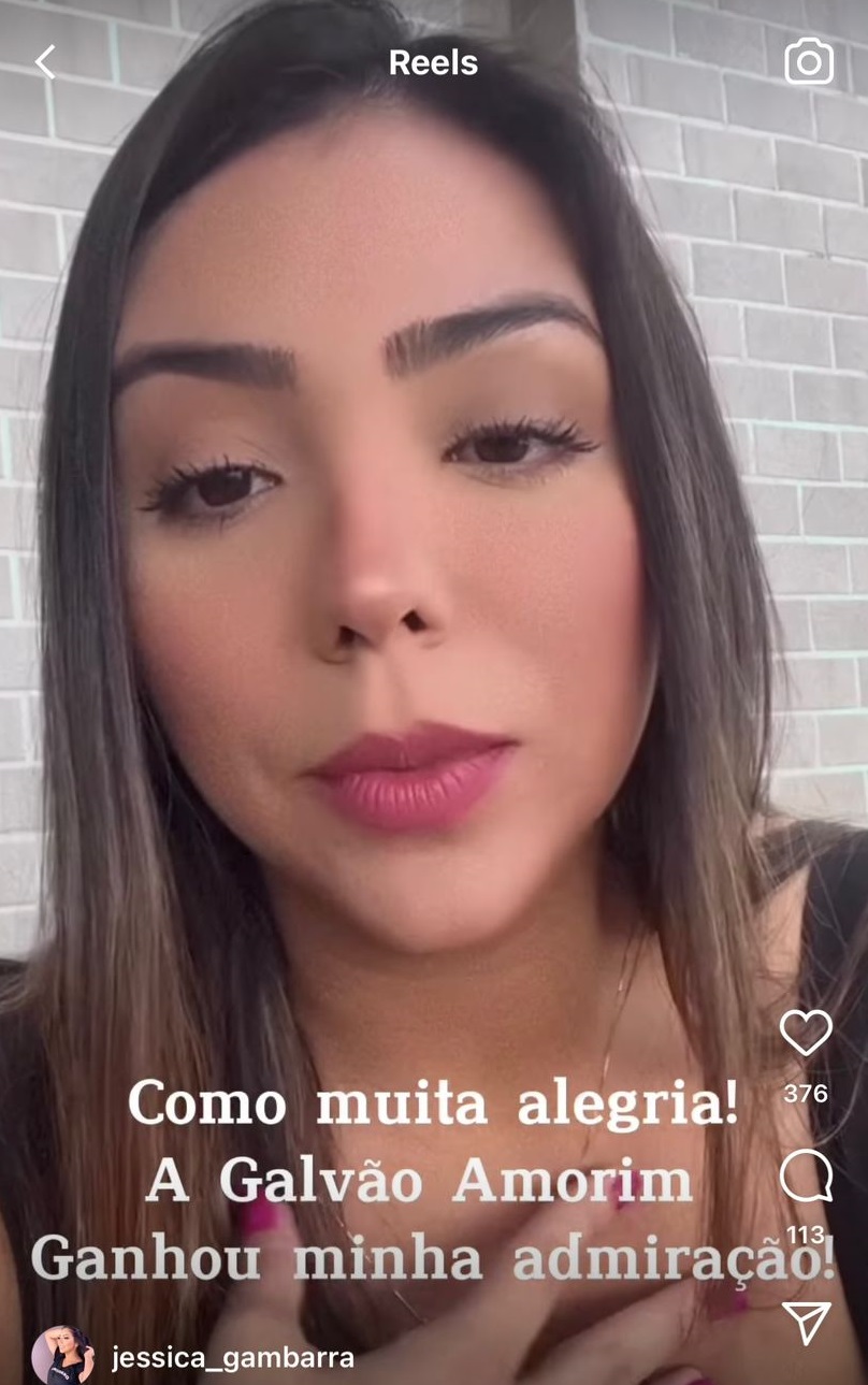 A influencer digital , Jéssica Gambarra, postou em suas redes sociais na tarde deste domingo (11), um vídeo elogiando a construtora Galvão Amorim.