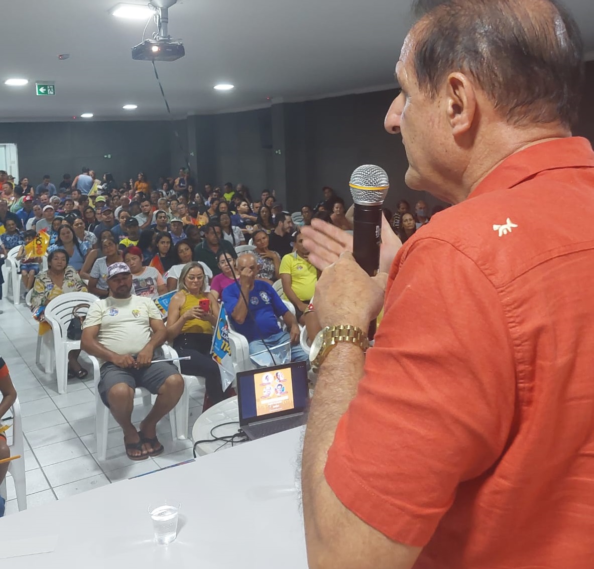Os candidatos a deputado estadual Hervazio Bezerra (PSB) e a federal Mersinho Lucena (PP), juntamente com o prefeito de João Pessoa, Cícero Lucena e o vice-prefeito Léo Bezerra, comandaram grande plenária com ambulantes de João Pessoa e região na noite desta terça-feira (21), no auditório do Sintep, no centeo da Capital.