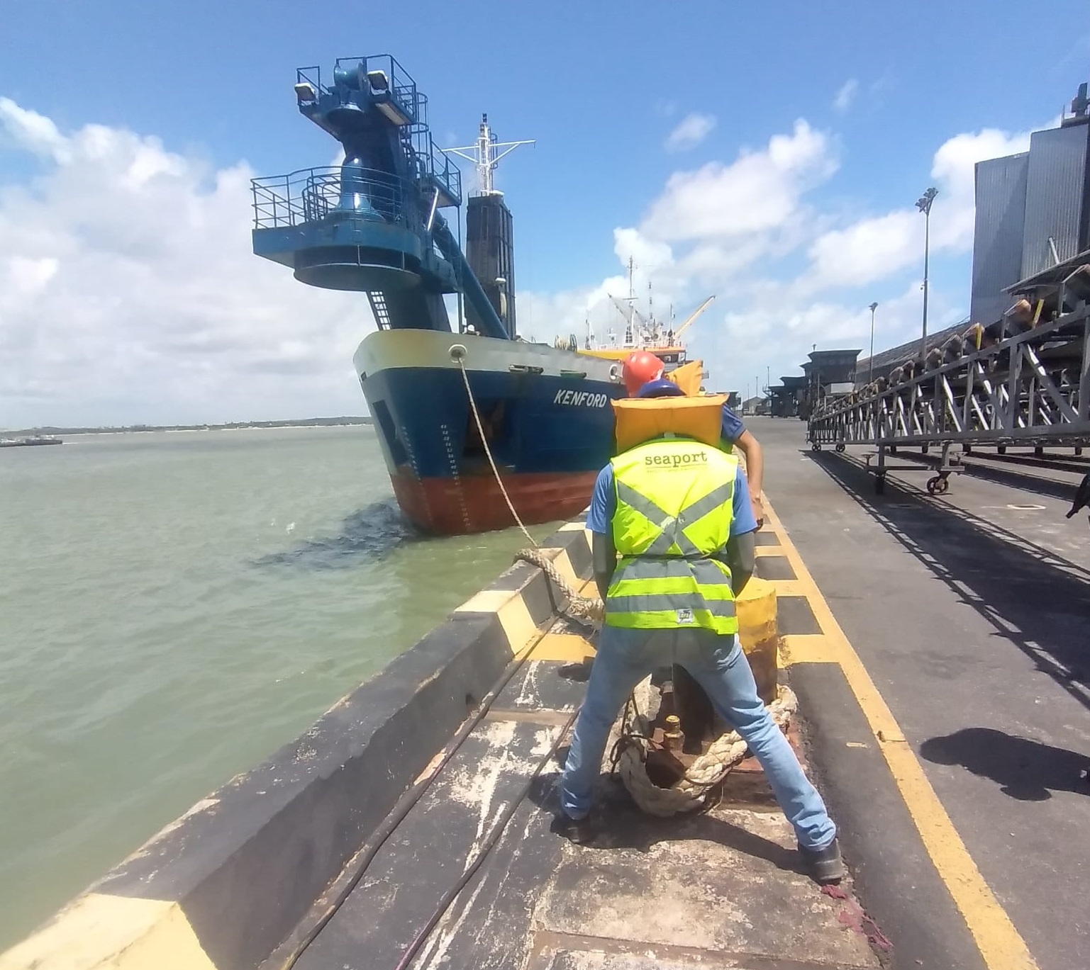 A draga Kenford, primeira embarcação da obra de dragagem do Porto de Cabedelo, atracou na manhã desta quinta-feira (13) e já fez o reconhecimento do canal de acesso e bacia de evolução.