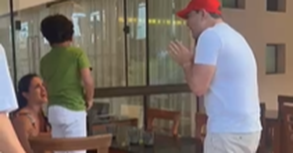 Após isso, a mulher desceu com os filhos para o restaurante do estabelecimento onde Rafael continuou, muito nervoso, a agredi-la verbalmente. No vídeo gravado por outros hospedes, Rafael está muito alterado e gritando com a mulher e filhos quando algumas pessoas começam a chegar e defender a mulher.