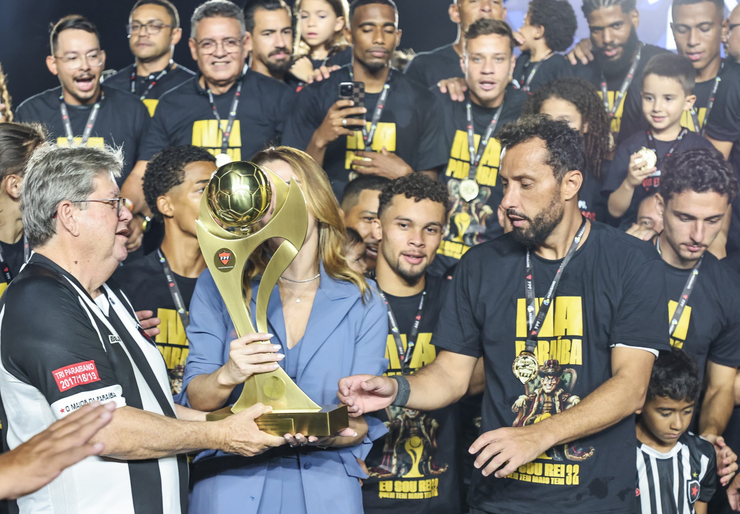 O governador João Azevêdo e a presidente da Federação Paraibana de Futebol, Michelle Ramalho, entregaram na noite deste sábado (21), a taça de Campeão Paraibano de Futebol ao Botafogo da PB, no Estádio Almeidão.